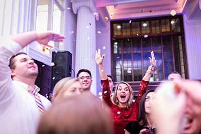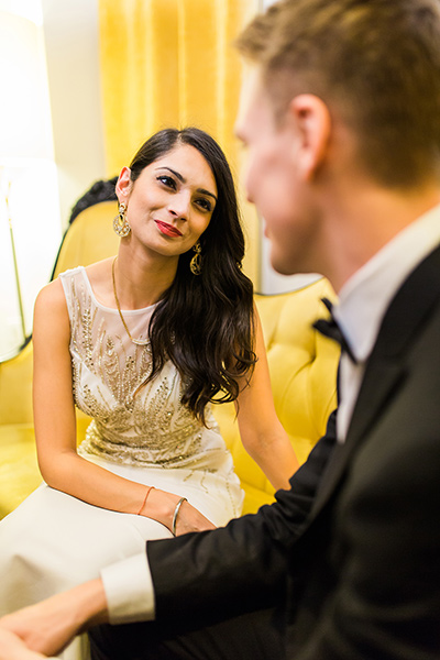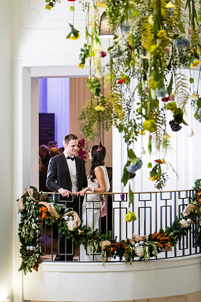 Fast-forward to December 2015, when the pair celebrated their wedding reception at Kimpton Hotel Monaco Pittsburgh. “It was the coolest spot in downtown Pittsburgh,” Jaya explains. “The ambiance and interior design won us over—especially the flower chandelier!”